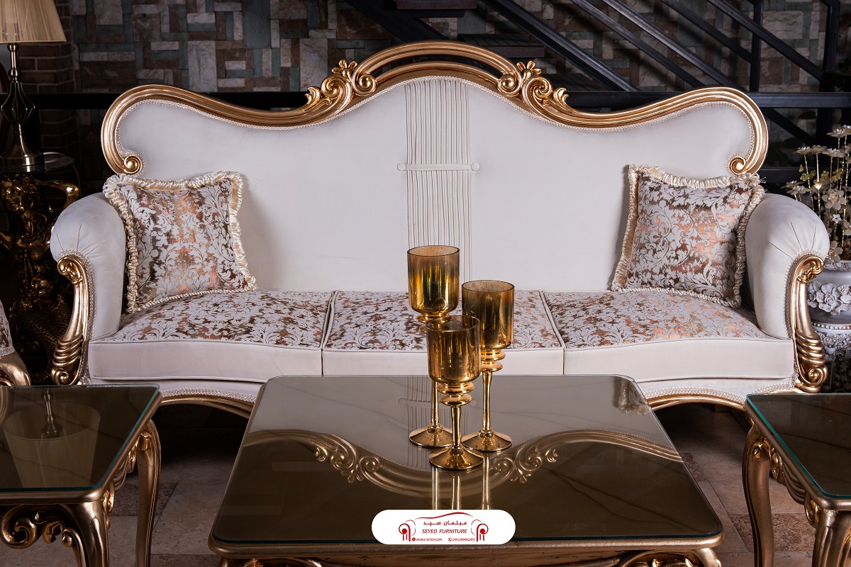 کاناپه مبل کلاسیک کیانا تاج های ویژه ای دارد و شکل و محل قرارگیری دسته ها زیبایی بسیار باشکوه و کلاسیکی به وجود می آورد. پایه های مبل کلاسیک کیانا بسیار جذاب و منبت کاری دسته شده است که به مبل جلوه و نمای خاصی می دهد. دسته و پایه ی کاناپه ی سه نفره به سبک بسیار ویژه ای طراحی شده است که جلوه و زیبایی این مبل کلاسیک را صد چندان می کند.
